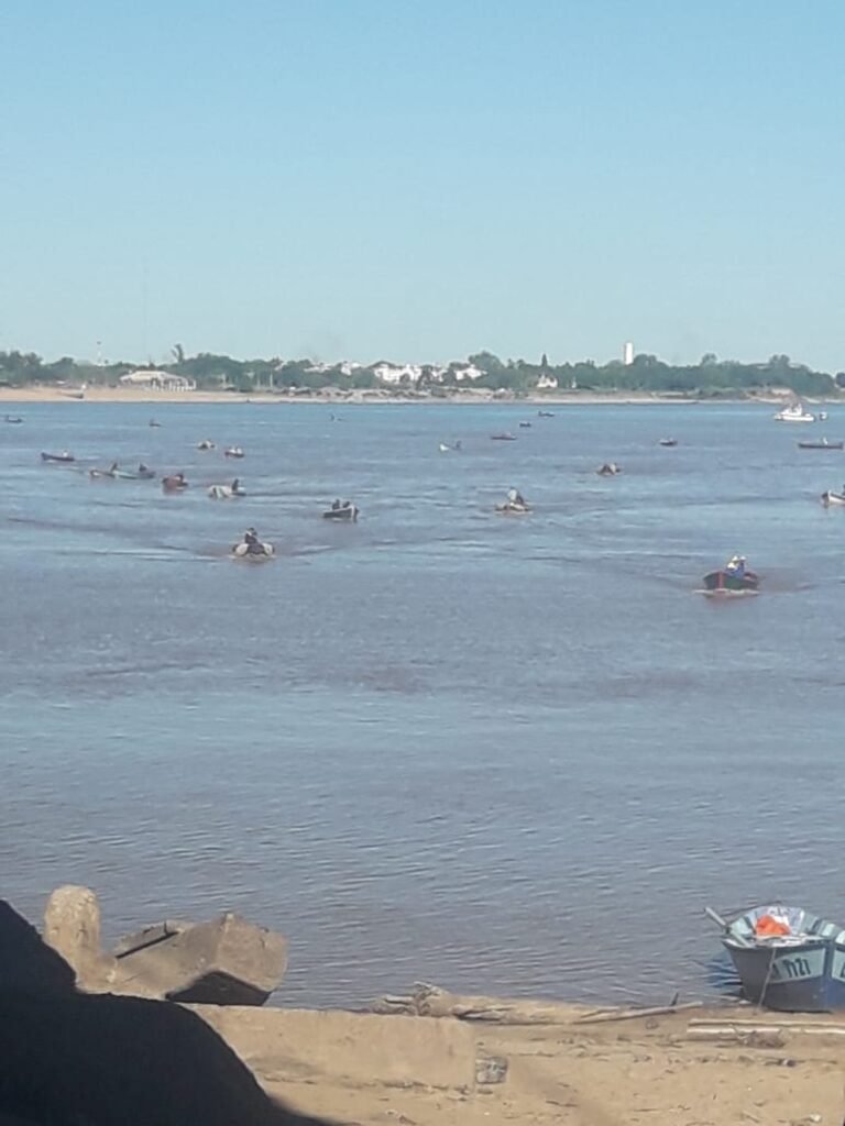 Además, otro grupo de pescadores prefirieron mostrar su disconformidad con la medida del Gobierno directamente desde su lugar de trabajo: el río.