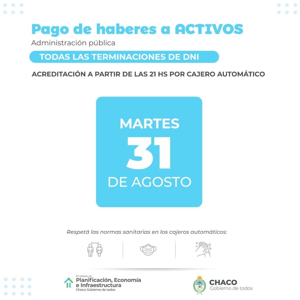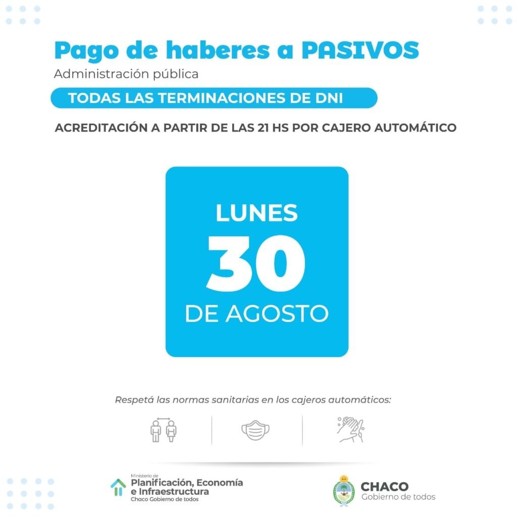 Así las cosas, el 30 de agosto será el día en que se acreditará el dinero a todos los pasivos, mientras que el 31 será el turno de los activos.