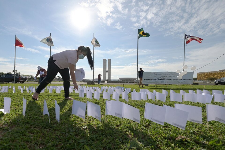 Este viernes la Asociación de Víctimas y Familiares de Víctimas de la Covid (Avico), creada en abril para presionar al gobierno de Bolsonaro. La organización colocó 600 banderas blancas frente al Congreso brasileño en memoria de las más de 600 mil muertes asociadas al coronavirus desde que comenzó la pandemia.«Este acto representa gran parte del dolor de cada una de estas familias y nuestra indignación por el desprecio del Gobierno por estas víctimas», afirmó Antonieta Alves, una de las participantes.