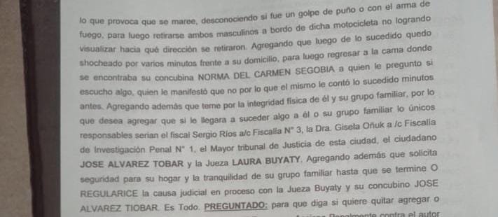 Luego de que se diera a conocer el escáldalo en el que se difundieron los audios de Buyatti . Un equipo fiscal a cargo del Dr Sergio Ríos y Dra Gisela Oñuk amigos tomaron la causa de oficio y los mismos calificaron al contenido del audio como «delictuoso».