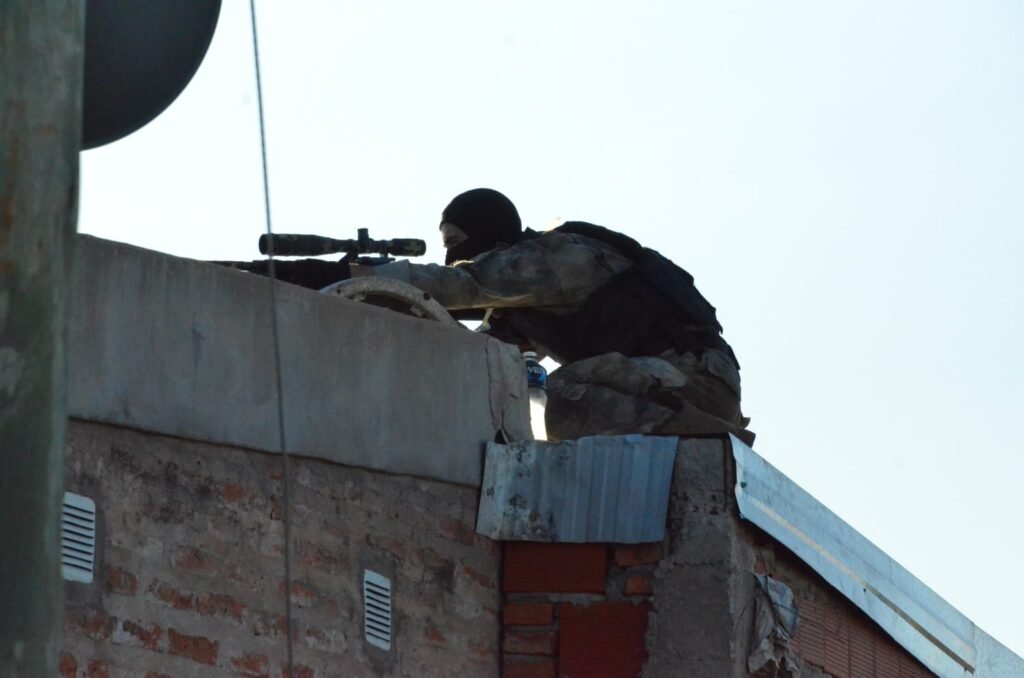 Cuando la Policía se dirigió al lugar ubicado en manzana 16, parcela 2, del bº Las Palmeras, se montó un operativo gigantesco con personal armado hasta los dientes, como si fueran detrás de un grupo terrorista. Cuando a metros del hecho se produjo dos violentos robos a mano armada.