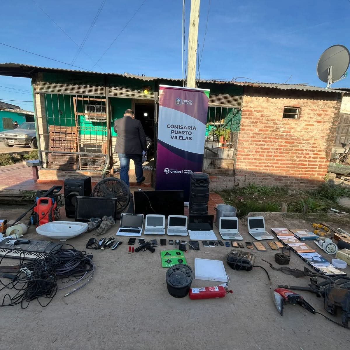 En un operativo simultáneo realizado este jueves al mediodía, la Policía llevó adelante dos allanamientos en Puerto Vilelas, que terminaron con dos personas detenidas y un amplio secuestro de objetos de todo tipo, desde armas hasta electrodomésticos y dinero en efectivo.
