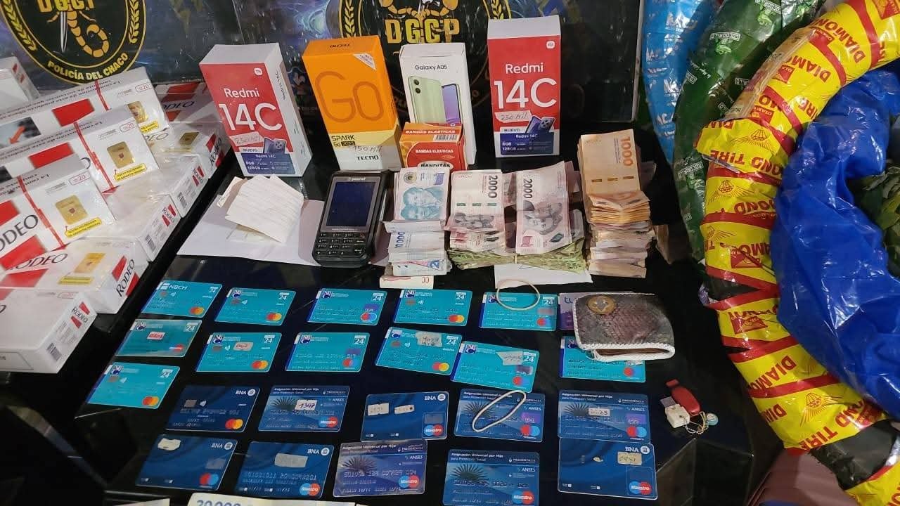 En un domicilio ubicado sobre calle Hugo Ullman, en Castelli, los agentes secuestraron tres teléfonos celulares, una balanza de precisión y 106.000 pesos en efectivo, elementos que serán analizados como parte de la causa. El segundo procedimiento se llevó a cabo en una vivienda situada en avenida Tero, en El Sauzalito, donde se incautaron 19 cartones de cigarrillos Rodeo, 64 paquetes sueltos, cuatro celulares, dos pendrives, tarjetas de débito y crédito a nombre de distintas personas, un posnet, un kilogramo de hoja de coca y diversos electrodomésticos, además de cuatro cajas de cartuchos.