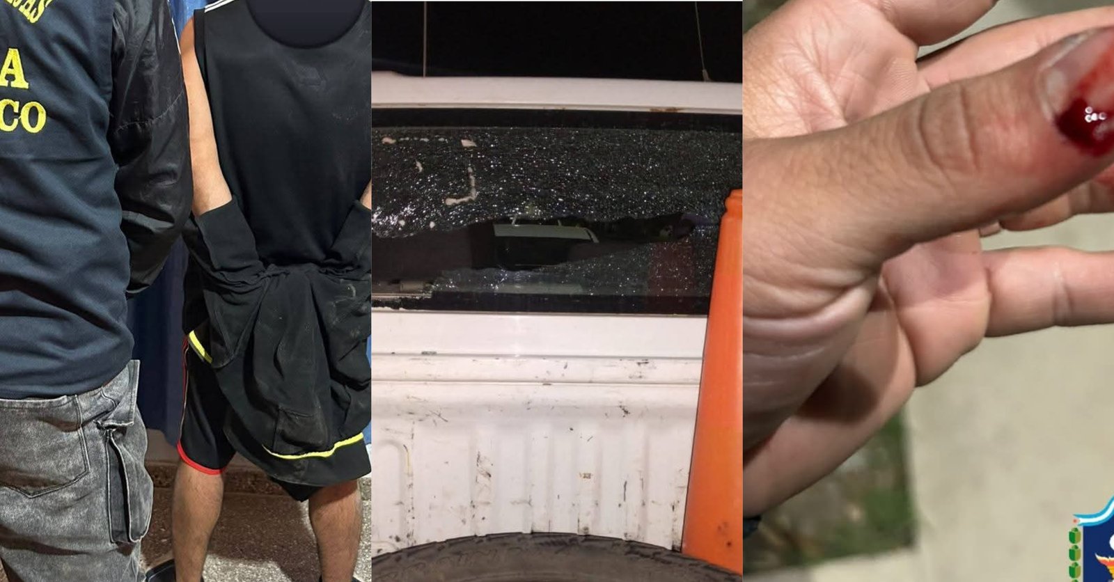 Durante la aprehensión, familiares del detenido intentaron liberarlo agrediendo al personal policial con golpes, patadas y proyectiles como ladrillos y botellas. Una de las piedras impactó en un patrullero, destrozando la luneta trasera y el espejo retrovisor derecho. Ante la violencia, se dispuso la retirada táctica para resguardar la integridad de los efectivos.