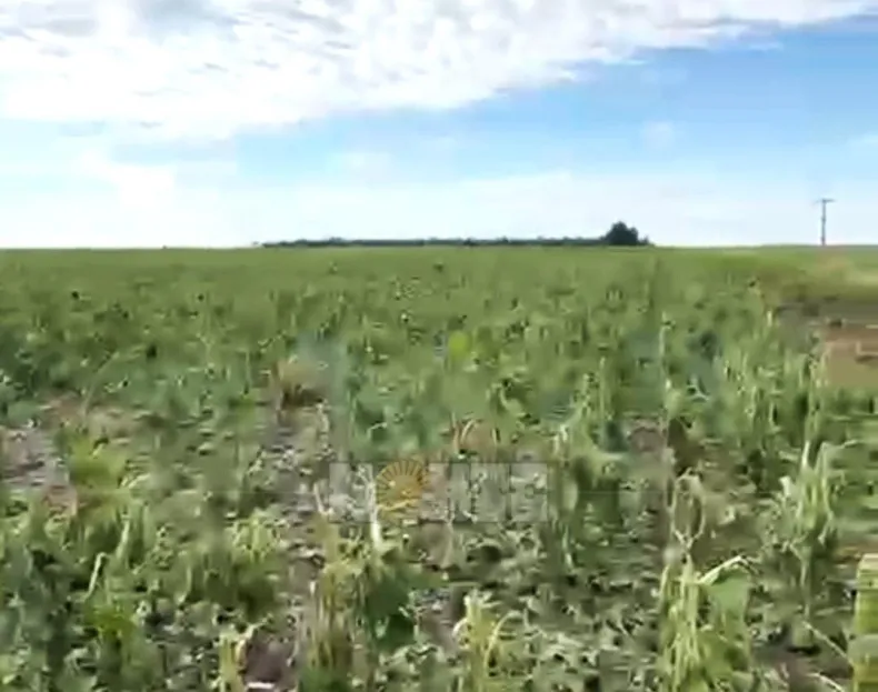 Productores de la zona rural de Hermoso Campo contabilizan pérdidas totales tras la tormenta que afectó la región: en un tramo de aproximadamente tres a cuatro kilómetros quedó destruido un porcentaje importante de cultivos, y en el caso de la familia Simoncini se confirmó la pérdida del 100% de 150 hectáreas de maíz y 150 hectáreas de girasol.