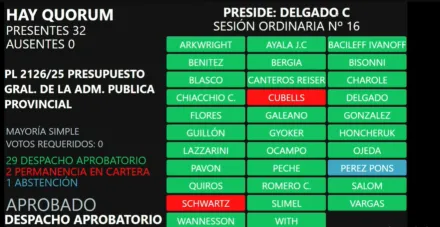Con 29 votos a favor, dos en contra y una abstención, los legisladores aprobaron con fuerza de ley el Presupuesto General de la Administración Pública Provincial para el Ejercicio Fiscal 2026.
