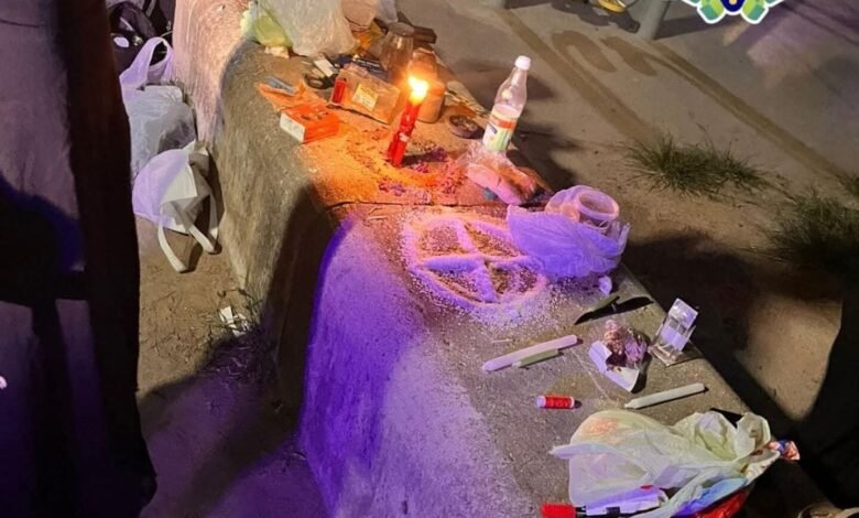 Según el parte policial, estos individuos estaban realizando una especie de ritual, encendiendo velas y otros elementos sobre uno de los bancos ubicados en el sector de juegos, más precisamente frente al helipuerto del parque.