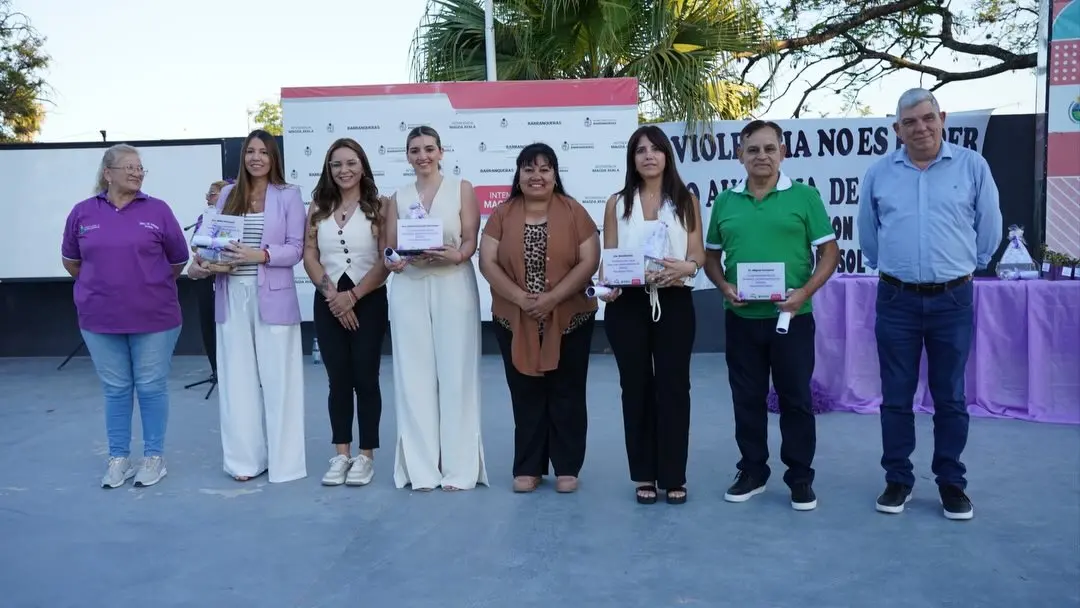 Durante el acto, la intendente Magda Ayala entregó certificados y placas de reconocimiento al procurador dr. Miguel Fonteina, a la fiscal dra. Nélia Velázquez, a la dra. Noel Benítez y a la dra. María Fernanda Abraham, destacando el rol fundamental que desempeñan en la protección de derechos y en el abordaje de situaciones de violencia.