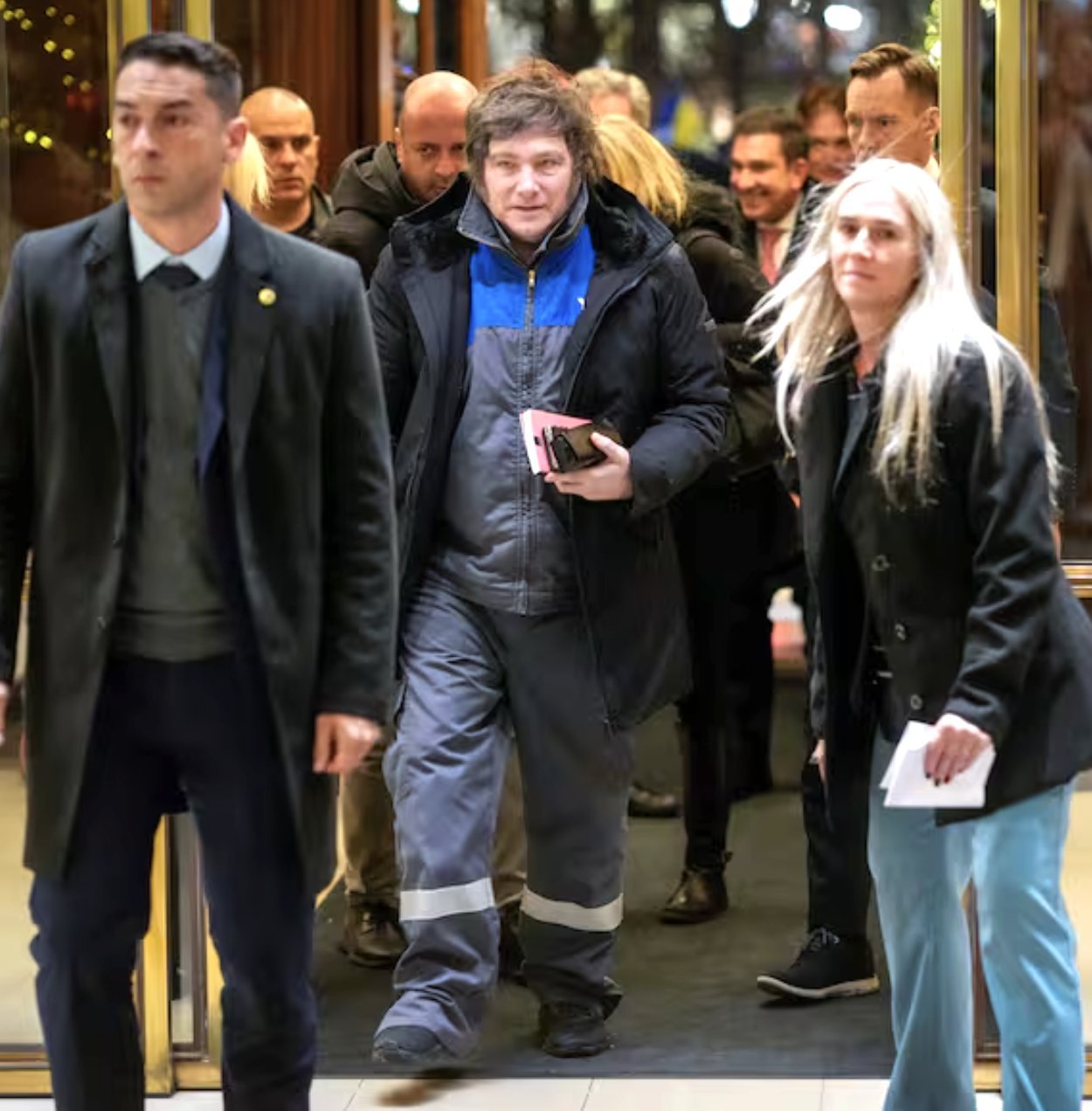 La particularidad es que el mandatario arribó al país nórdico vestido con el mameluco de YPF, la empresa estatal de petróleo.