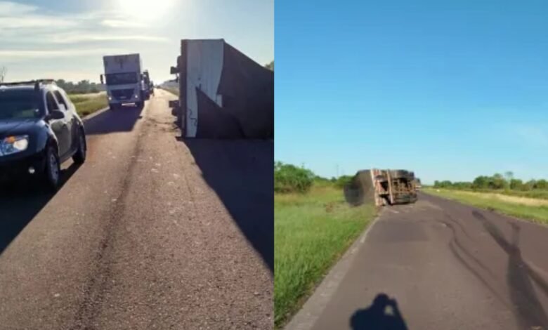 Accidente en la Ruta 16: volcó un camión brasileño y el conductor resultó herido