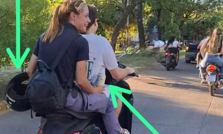 Según el informe oficial, en la imagen se observa a una persona de sexo femenino circulando como acompañante en una motocicleta, vistiendo uniforme policial, sin casco de seguridad colocado y sosteniendo en su mano lo que aparenta ser una lata de cerveza.