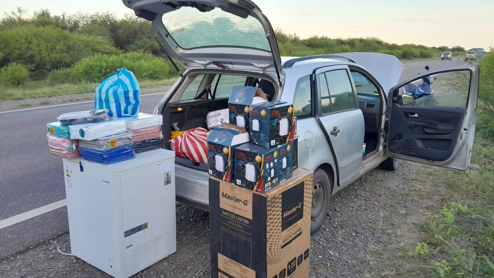 En ese contexto, los efectivos interceptaron un Volkswagen Suran que circulaba desde el país vecino de Bolivia con destino a la localidad de Taco Pozo. Al inspeccionar el vehículo, constataron que transportaba distintos electrodomésticos y mercaderías.