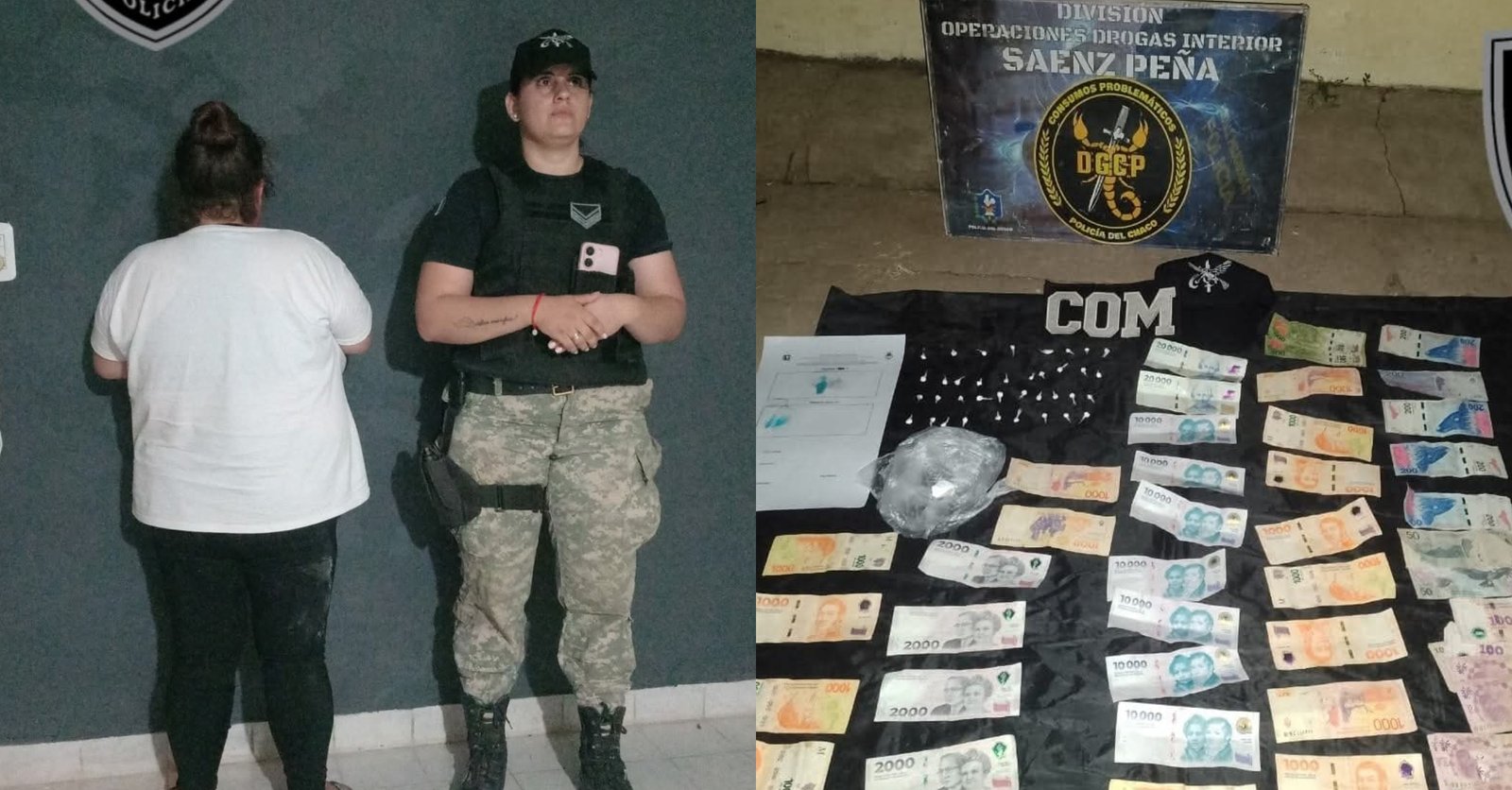 El procedimiento fue realizado cerca de las 23 h por el Cuerpo de Operaciones Motorizadas, tras denuncias de vecinos. En la calle Salta, los efectivos la identificaron y, al revisar su bolso, hallaron 38 envoltorios con cocaína, con un peso total de 11,4 gramos, y la suma de $139.700 en efectivo.