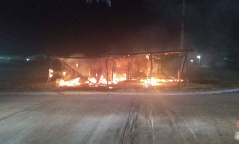 Al arribar al lugar, los efectivos constataron que el fuego afectaba a una verdulería de estructura precaria, de aproximadamente diez metros de frente por cuatro de fondo, construida con postes de madera y lona.
