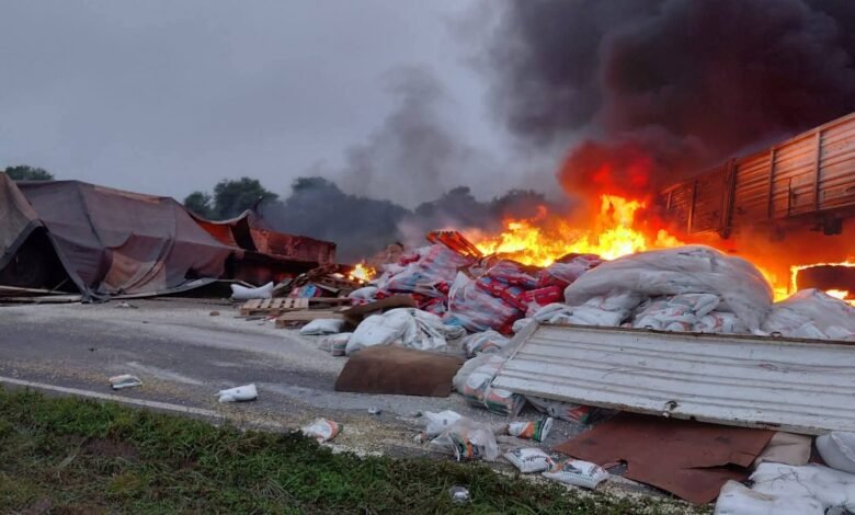 El camión de Juroczko colisionó contra otro y, tras el impacto, ambos rodados, que transportaban alimentos balanceados, se incendiaron por completo.