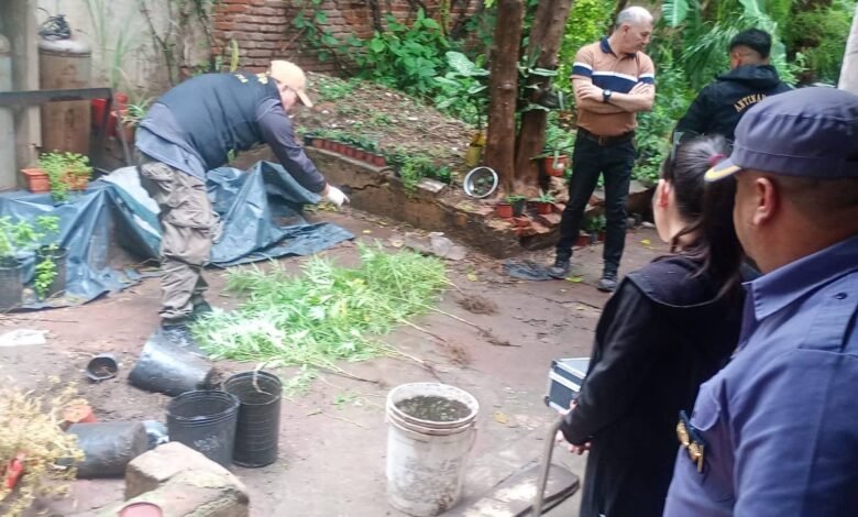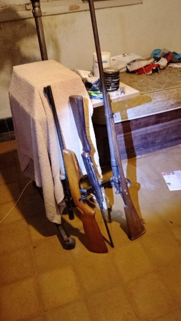Personal de Antinarcóticos confirmó la existencia de marihuana (plantas, plantines y cogollos), mientras que también se incautaron varias armas de fuego, entre ellas una pistola 9 mm, una carabina, una escopeta y un rifle de aire comprimido.