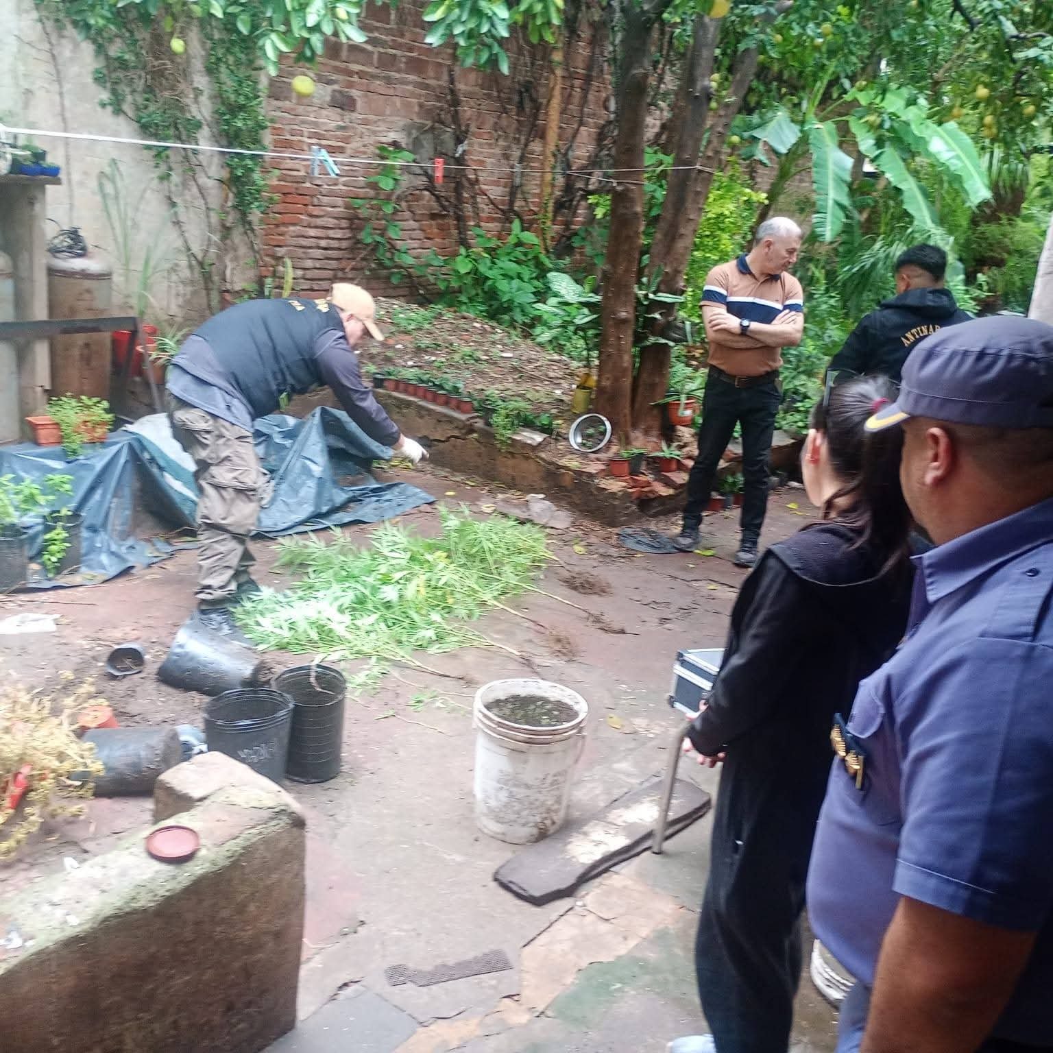 Personal de Antinarcóticos confirmó la existencia de marihuana (plantas, plantines y cogollos), mientras que también se incautaron varias armas de fuego, entre ellas una pistola 9 mm, una carabina, una escopeta y un rifle de aire comprimido.