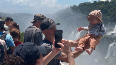 Sostuvieron a su bebé en el vacío para una foto en las Cataratas del Iguazú