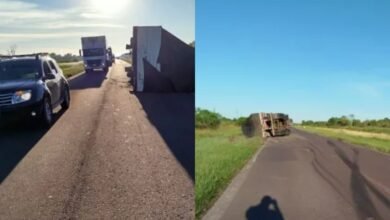 Accidente en la Ruta 16: volcó un camión brasileño y el conductor resultó herido
